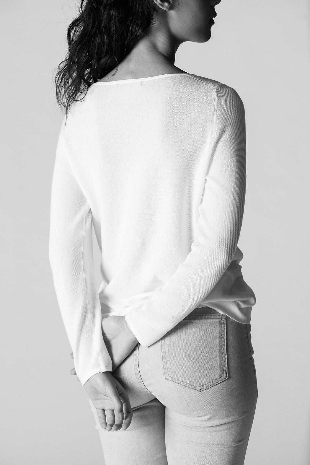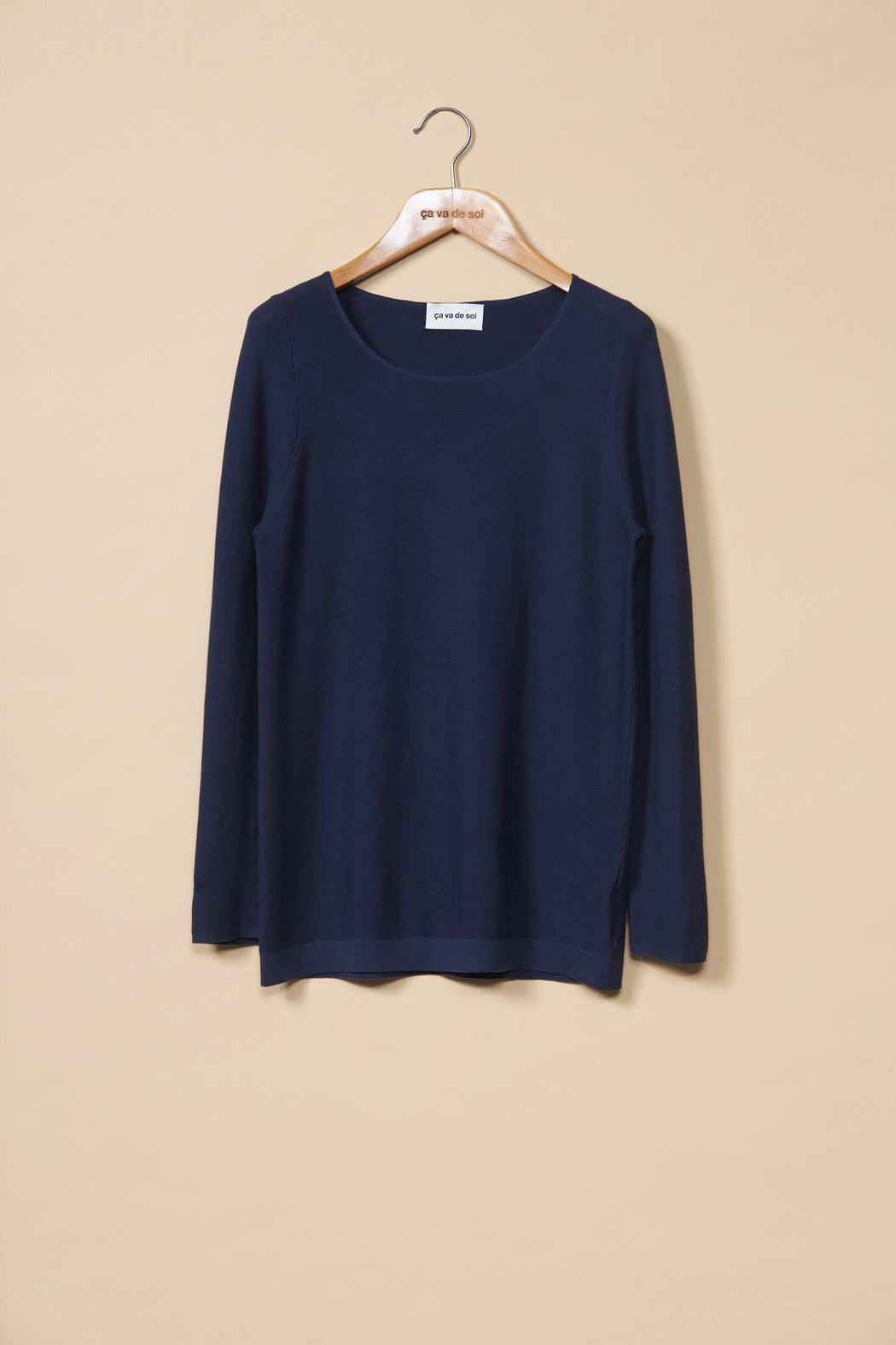This feminized version of the sailor sweater is made with Egyptian Nilo cotton: the first ELS - extra long staple - organic cotton, the hybrid of two exceptional seed varieties of cotton Giza 45 and Giza 87. The balmy effect of this cotton on the skin is pure joy. Its elegant bracelet sleeve, tubular zen finishing and garter stitch knit gives the sweater fluff yet in absolute finesse (16-gauge). We produced this fine knit in four essential colors hank dyed by Italian masters.