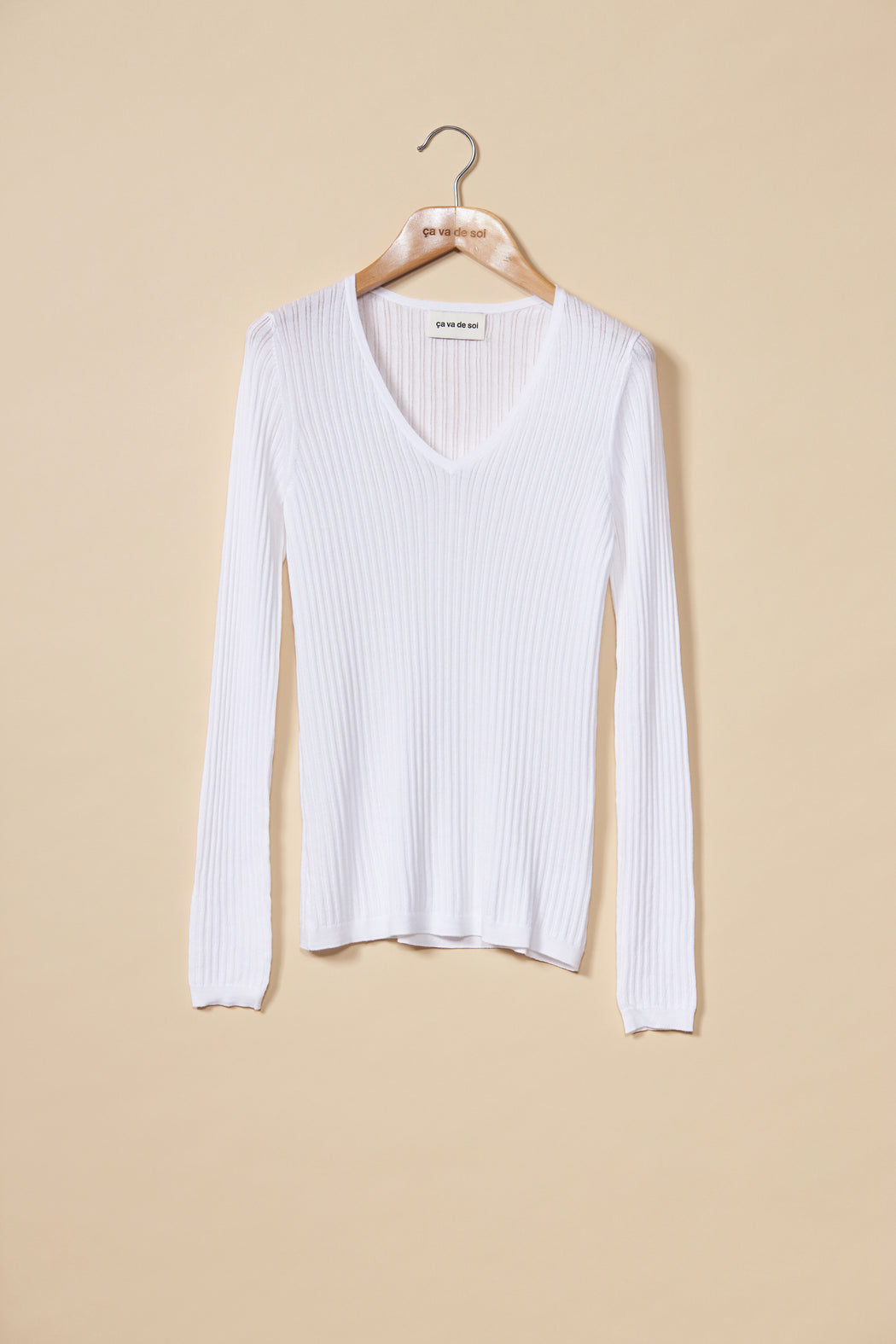 This iconic ribbed v-neck sweater is made with Egyptian Nilo cotton: the first ELS - extra long staple - organic cotton, the hybrid of two exceptional seed varieties of cotton Giza 45 and Giza 87.The balmy effect of this cotton on the skin is pure joy. Its variable knit texture is a wink to the 70's . We produced this fine knit in four essential colors hank dyed by Italian masters.