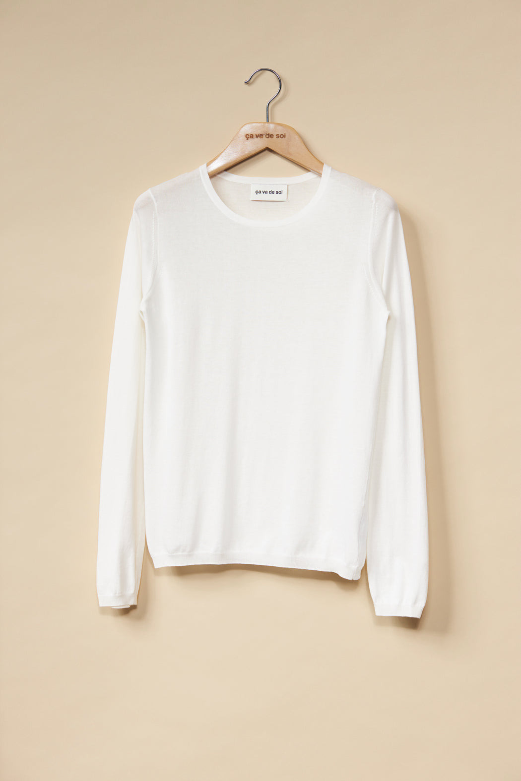 This ultimate long sleeve crew neck sweater is made with Egyptian Nilo cotton: the first ELS - extra long staple - organic cotton, the hybrid of two exceptional seed varieties of cotton Giza 45 and Giza 87. The balmy effect of this cotton on the skin is pure joy. Its ultra-fine spinning technique of compact and multiple yarns create higher performance and durability with a sleek refined look. An essential, versatile piece to be used as an underpinning year round or worn on its own with a slight transparency. We produced this fine knit in four rich classic colors hank dyed by Italian masters.