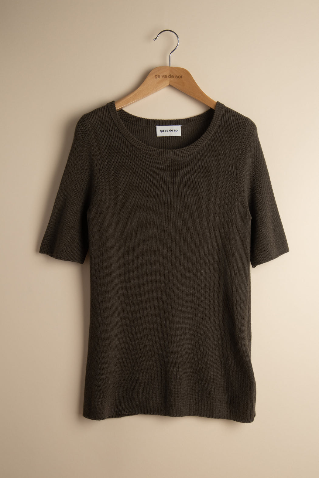 Crewneck sweater whose unusual length from the sleeves to the elbows guarantees sophistication and allure. Its slightly loose fit gives it a casual look.