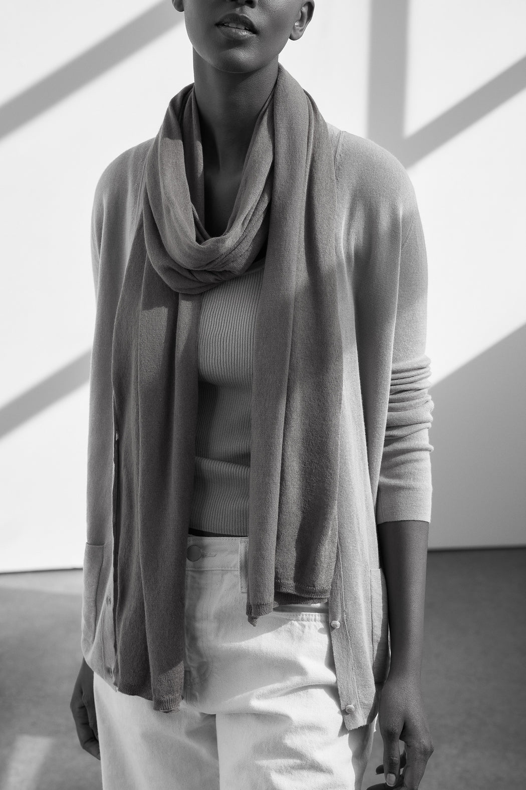 A real delight, this scarf-shoulder cover to wear in spring-summer when it's a little breeze or in the air conditioning. Finally, the cotton version was missing to complete the choice of scarves now available in all materials.