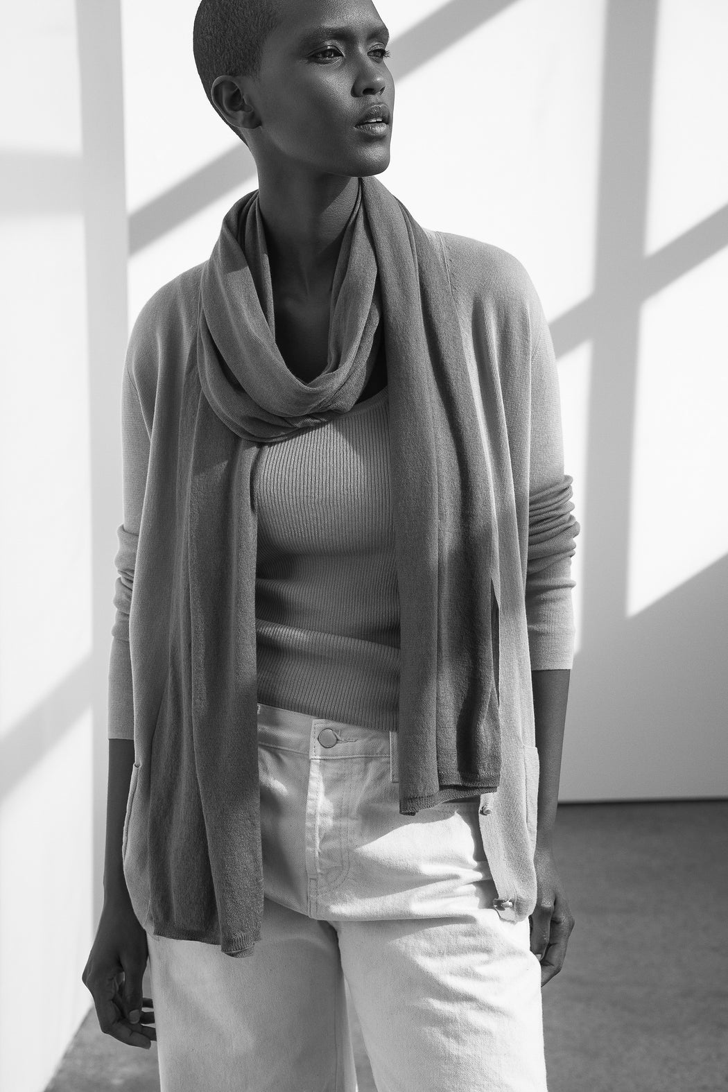 A real delight, this scarf-shoulder cover to wear in spring-summer when it's a little breeze or in the air conditioning. Finally, the cotton version was missing to complete the choice of scarves now available in all materials.