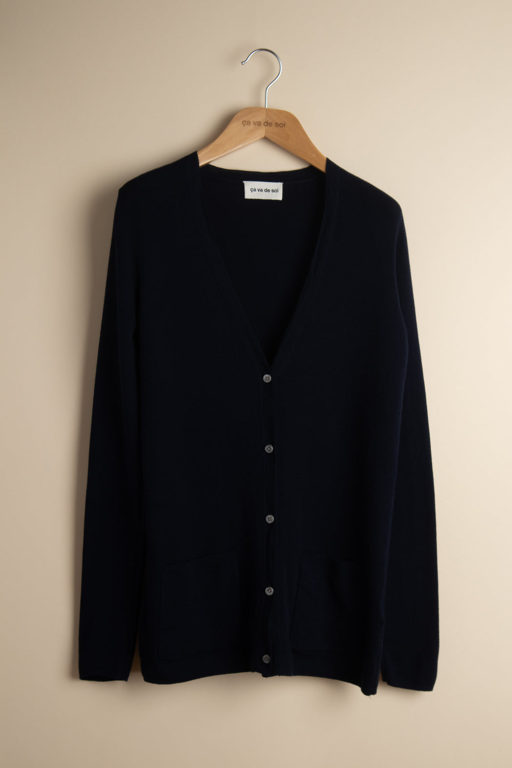 This ribbed V-neck cardigan with its 2 patch pockets is the perfect replacement for the women's blazer, sporting a casual elegance, and a natural stretch thanks to its fine ribbing.