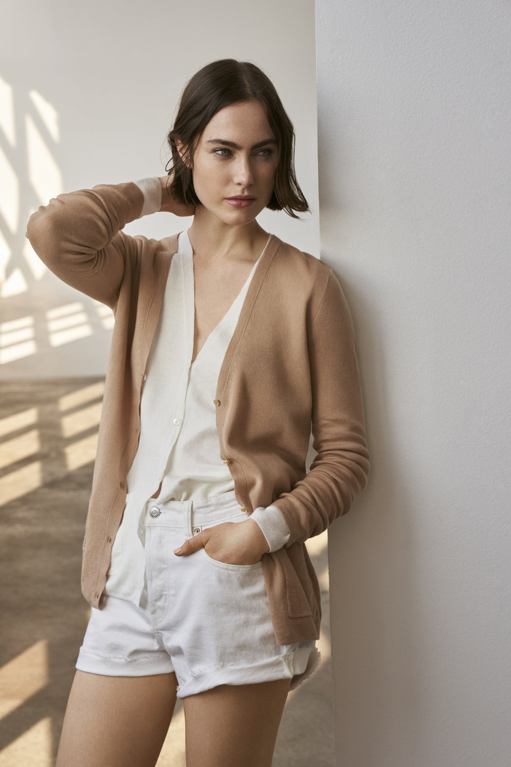 This ribbed V-neck cardigan with its 2 patch pockets is the perfect replacement for the women's blazer, sporting a casual elegance, and a natural stretch thanks to its fine ribbing.