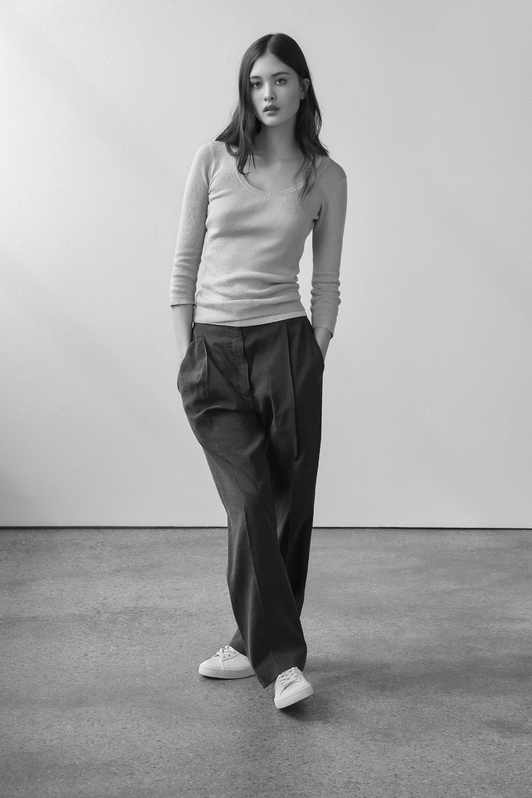 This ballerina neckline and bracelet sleeves knit is made of Egyptian Nilo cotton: the first organic cotton with extra-long staples resulting from the crossing of the seeds of 2 cottons