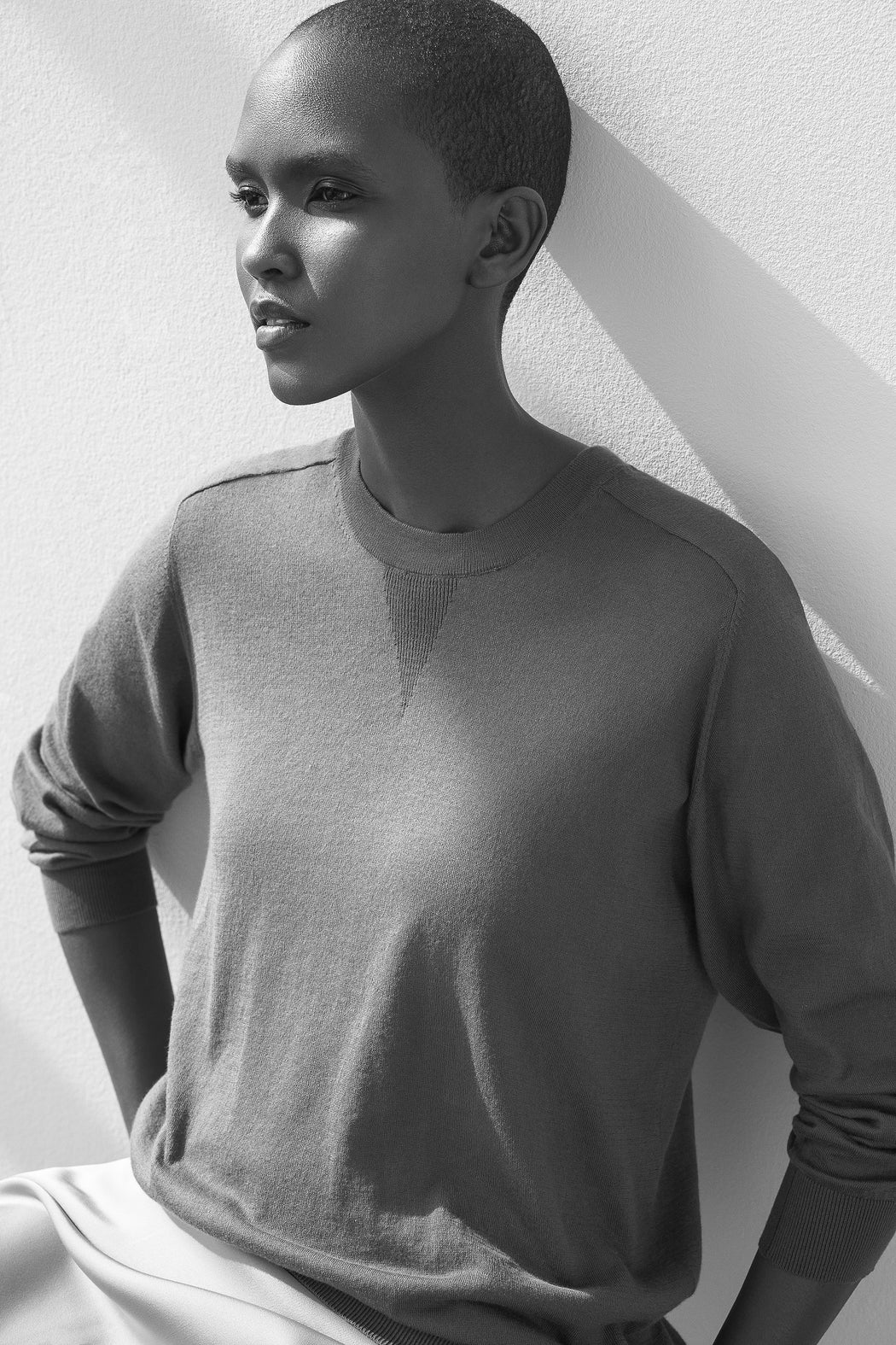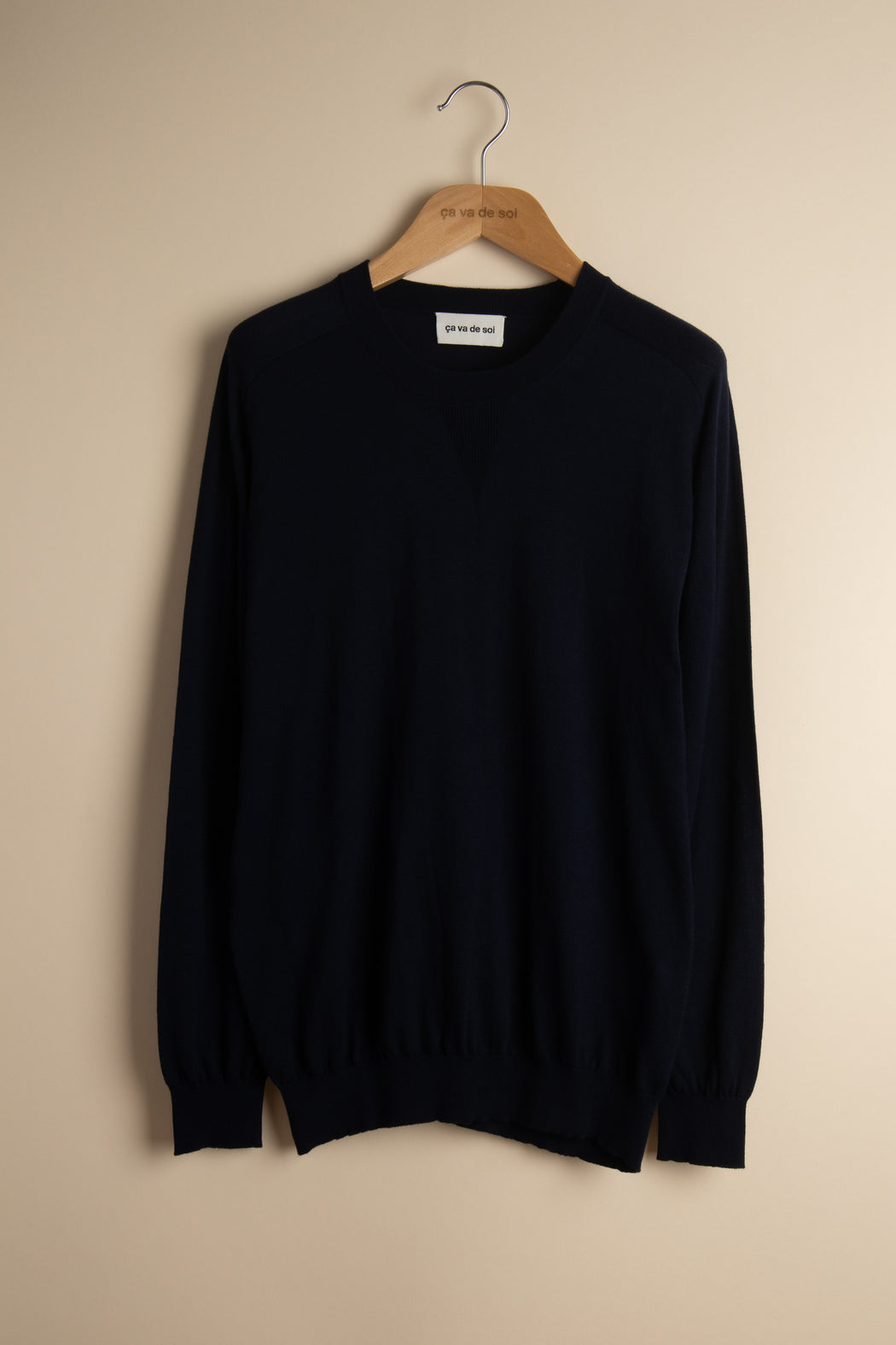 It's not just any round-neck sweater... With its saddle shoulder armhole, its slightly bubble shape, and the 'baseball' detail on the front, it brings a couture spirit to the great sports classic by Benjamin Russel Jr. We make it more formal with a pencil skirt or more relaxed with a pair of jeans that have become as cozy as him.