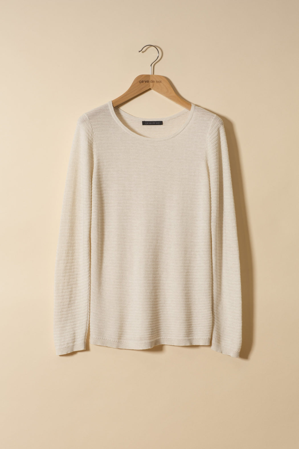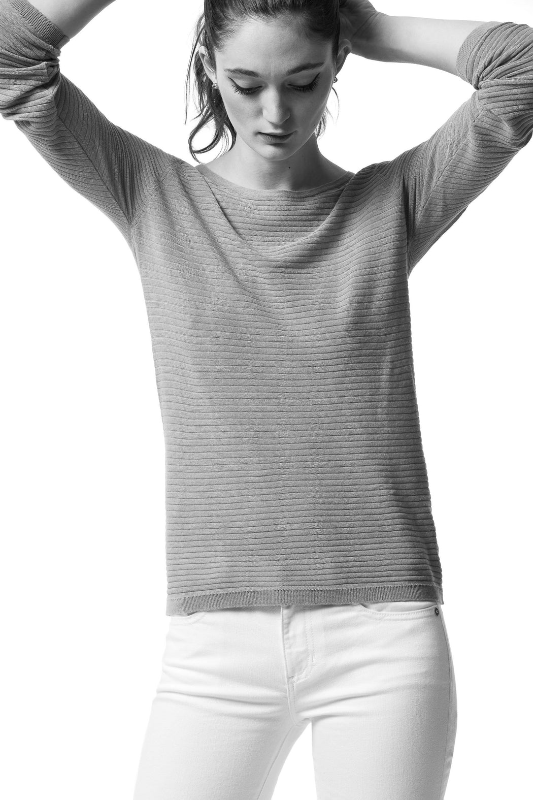 This sweater is made of Egyptian cotton COM4-ZERO™, the fruit of 50 years of research. This Italian thread combines the age-old beauty of Egyptian cottons with a cutting-edge spinning technique that almost entirely eliminates fuzziness, which traditionally causes pilling over time. The thread is twisted as little as possible to maintain the fibre’s natural elasticity, giving more movement to clothing made from it. The smoother finish also makes it better resist the passage of time. And the increased stability preserves colours indefinitely.