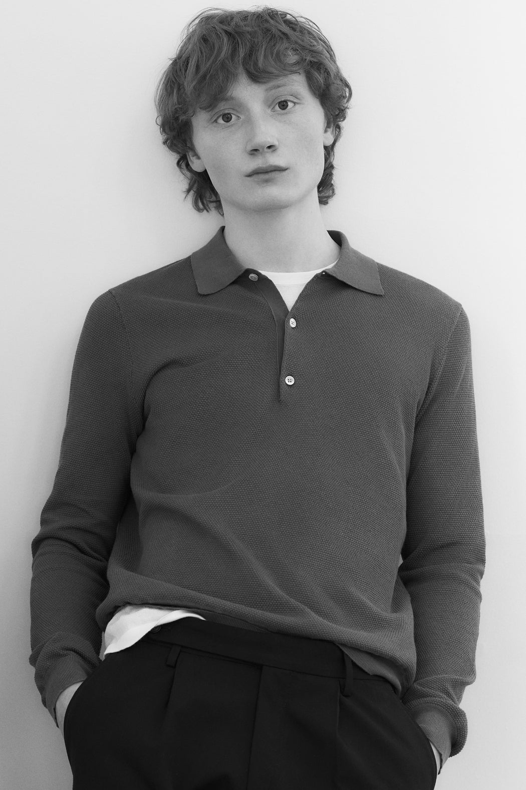 Eugène is a polo style sweater knitted with a piqué texture: one of the most elegant and versatile choices in fashion today. With its distinctive weave and refined appearance, piqué has become a staple in modern wardrobes. This polo is a more relaxed alternative to the traditional office shirt. Its discreet jersey button placket brings a clean, comfortable look, while the ribbed cuffs and hem offer a fitted finish. Whether in the city or in the country, Eugène is a sophisticated everyday companion.
