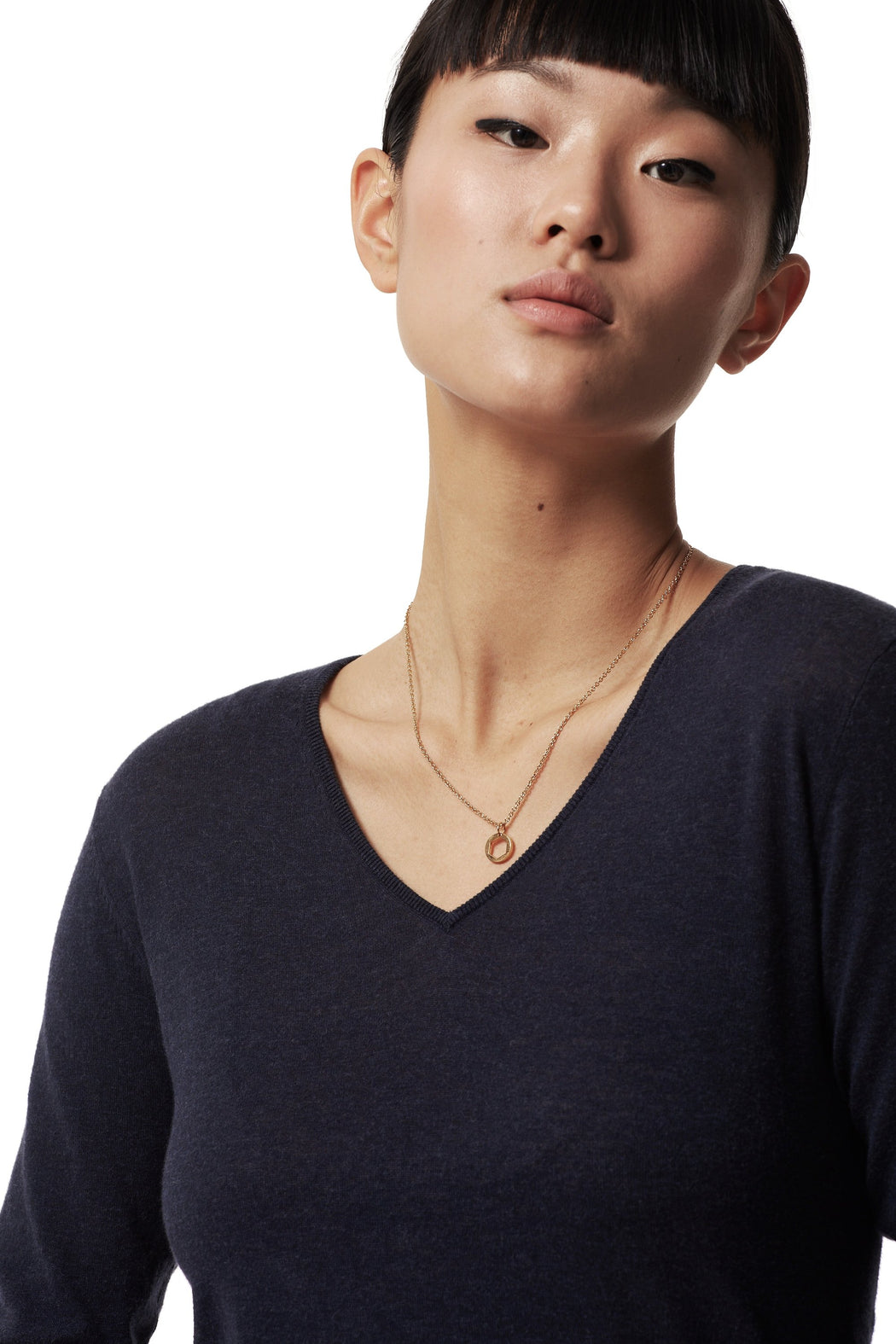 This top is made of Egyptian cotton COM4-ZERO™, the fruit of 50 years of research, in its poplin-inspired version. This Italian thread combines the age-old beauty of Egyptian cottons with a cutting-edge spinning technique that almost entirely eliminates fuzziness, which traditionally causes pilling over time. The thread is twisted as little as possible to maintain the fibre’s natural elasticity, giving more movement to clothing made from it. The smoother finish also makes it better resist the passage of time. And the increased stability preserves colours indefinitely.