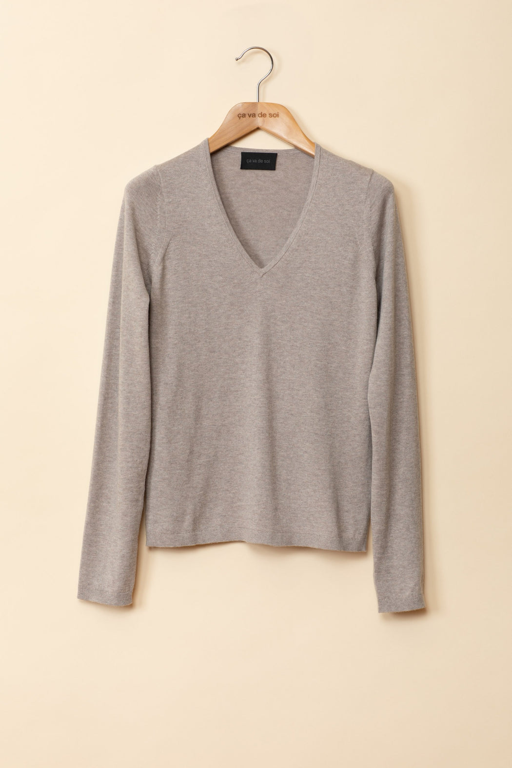 This streamlined v-neck pullover will become one of your wardrobe essentials for the years to come. Melodie can truly follow you anywhere due to its unique natural shine and effortless comfort. Made of a blend composed Giza45 is the finest high-quality cotton, long staple with fibres longer than 36mm mixed with pure cashmere sheered and combed by hand for a resistant and naturally soft yarn. The precious Giza45 mako cotton is hand picked and selected, then goes through the compact spinning process, which closes all loose fibres inside the section of the yarn, and aligned parallel for an even surface. This hard work gives a perfect even finish to the products; yarns are twisted after the dyeing process for 100% uniformity. The dyeing process, respects strict environmental norms, water is purified, tested and recycled. We produced this knit in 4 timeless hues (hank dyed by Italian masters): ivory, silver, pebble, and black.