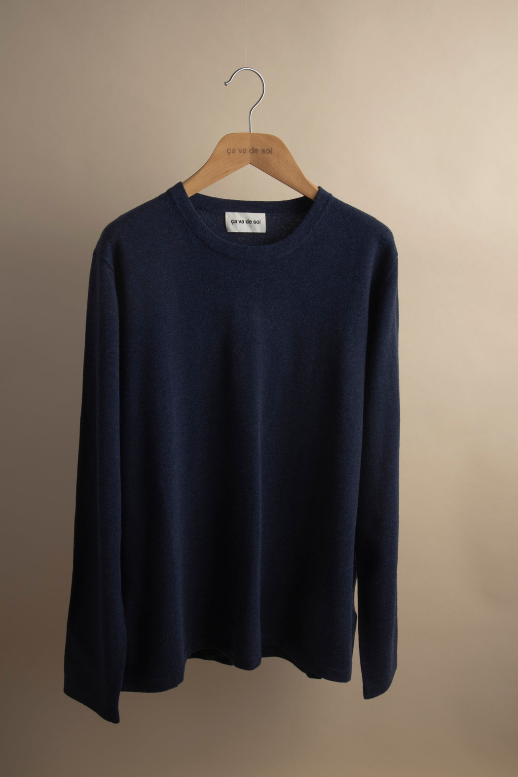 Knitted in carded merino wool, spun expressly in Italy for ça va de soi, whose extrafine (15.5-micron) and ultra-long fibre (a guarantee of longevity and beauty) gives the impression of wearing a cozy cloud — an emotional and intelligent material that understands one’s body language.
