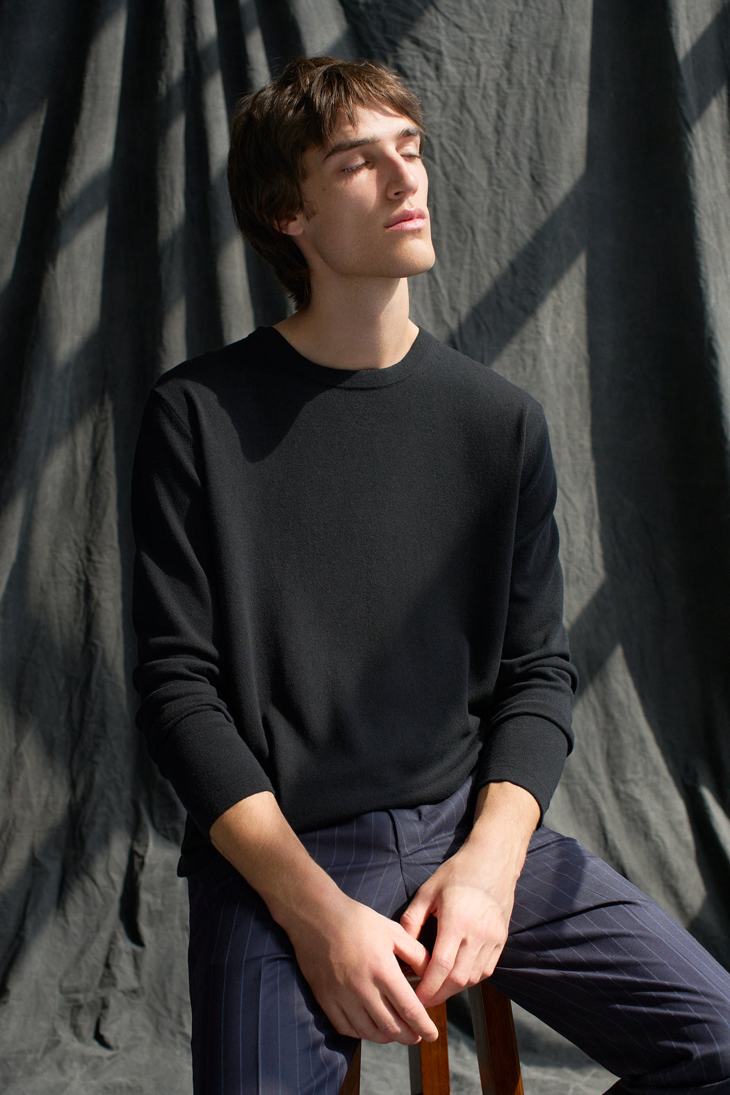 The purity and modernity of this crewneck’s lines will adapt to your every mood and need. Its strength lies in its timeless shape—an essential you’ll keep for years. Subtle modernity is found in its tubular jersey finishes at cuffs and hem, ensuring a straight, impeccable drape.