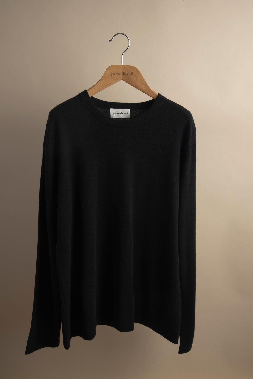 Knitted in carded merino wool, spun expressly in Italy for ça va de soi, whose extrafine (15.5-micron) and ultra-long fibre (a guarantee of longevity and beauty) gives the impression of wearing a cozy cloud — an emotional and intelligent material that understands one’s body language.