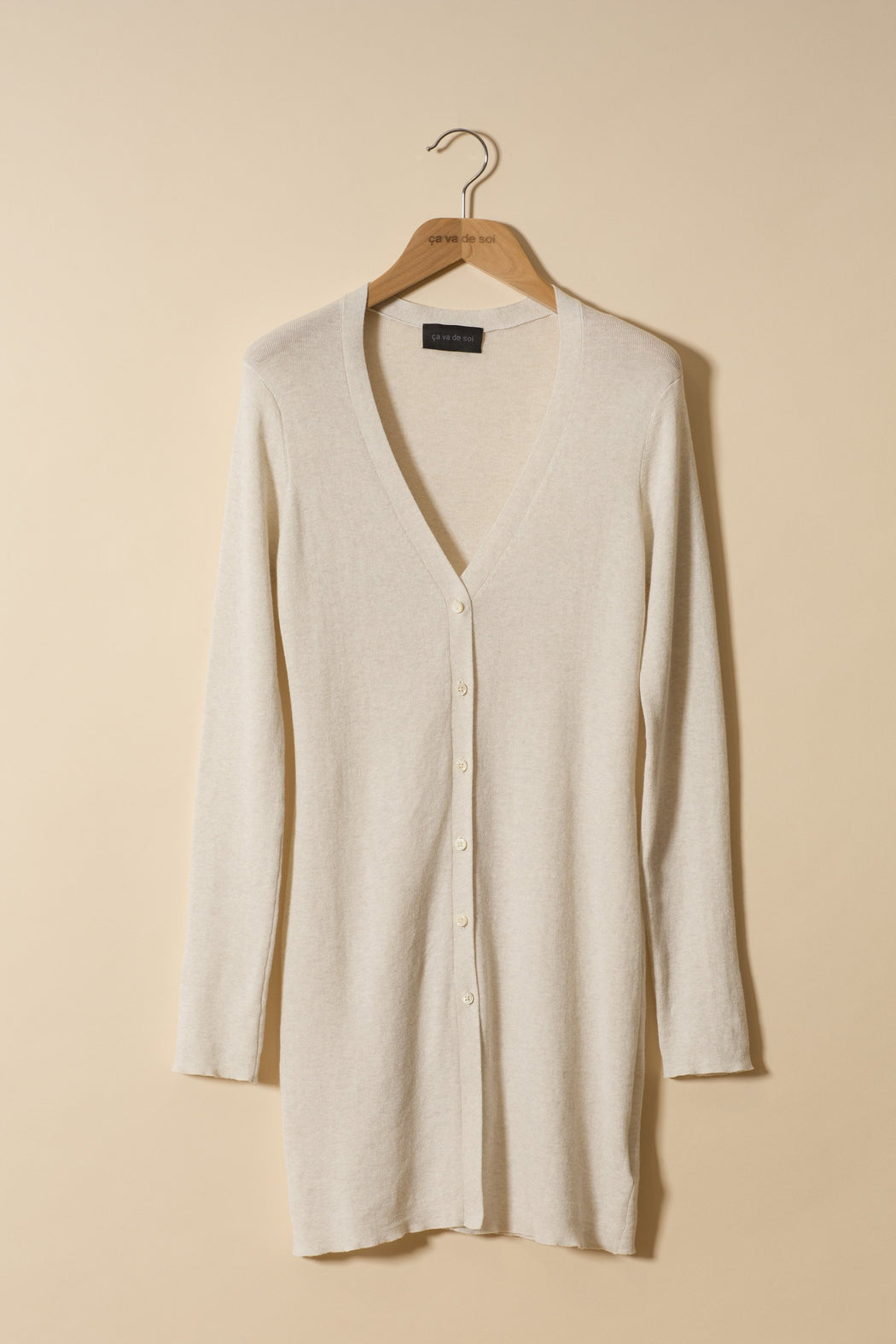 This cardigan is made of Egyptian cotton COM4-ZERO™, the fruit of 50 years of research, in its poplin-inspired version. This Italian thread combines the age-old beauty of Egyptian cottons with a cutting-edge spinning technique that almost entirely eliminates fuzziness, which traditionally causes pilling over time. The thread is twisted as little as possible to maintain the fibre’s natural elasticity, giving more movement to clothing made from it. The smoother finish also makes it better resist the passage of time. And the increased stability preserves colours indefinitely.