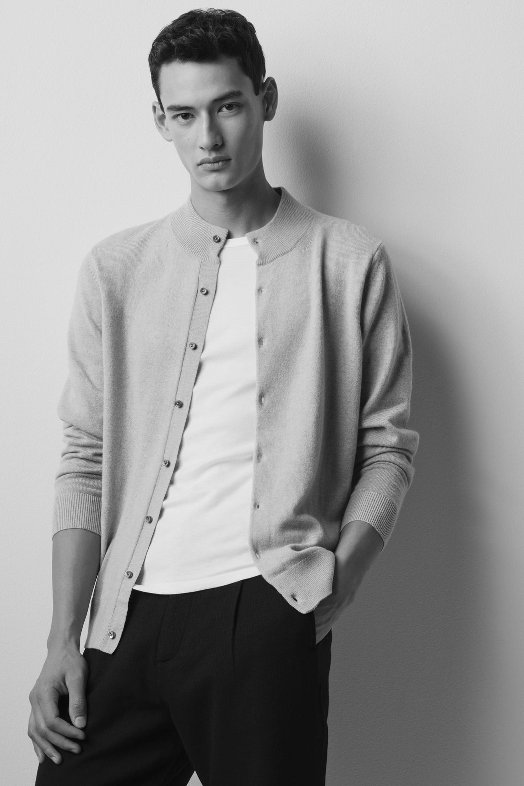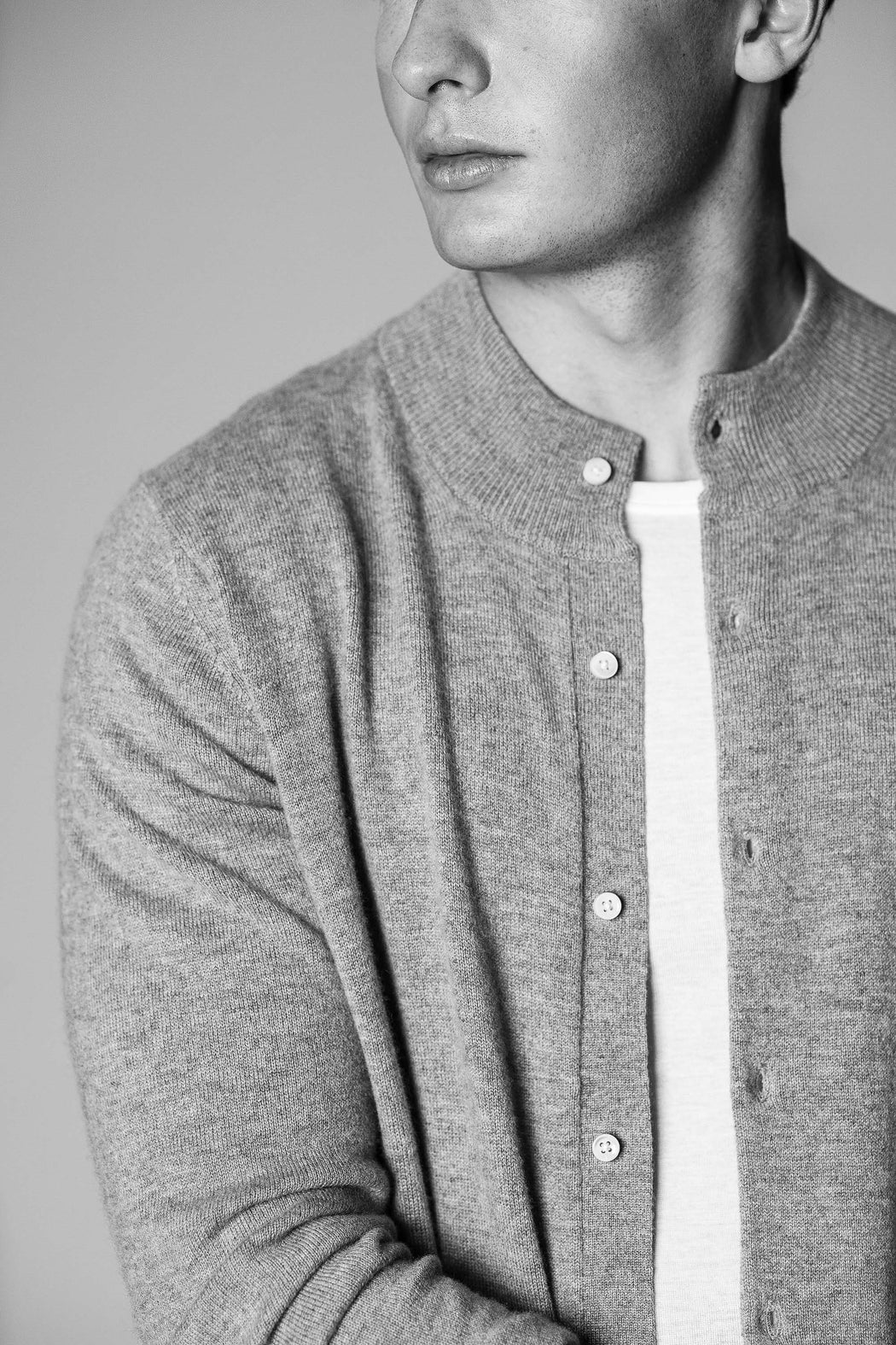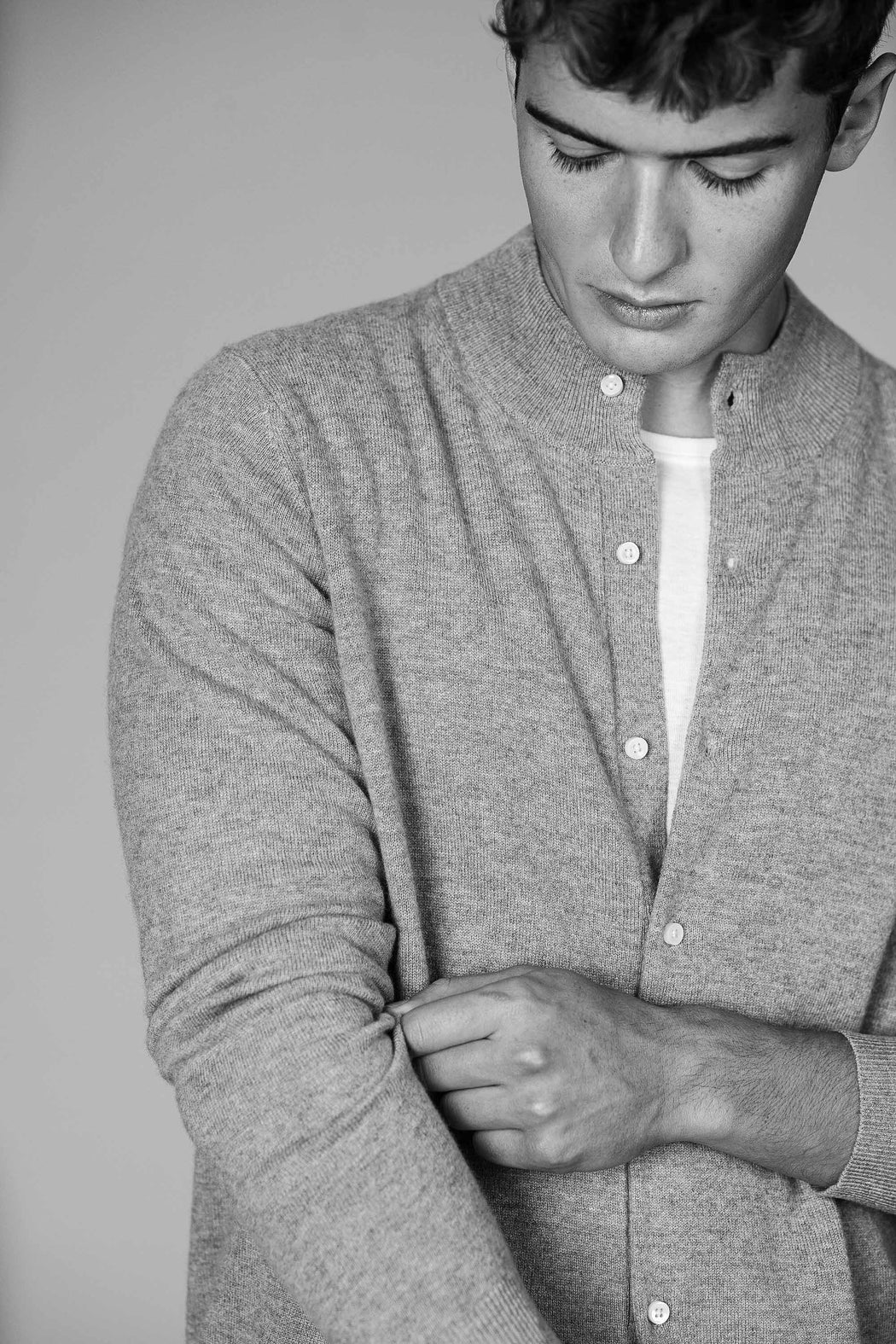 This high neck knitted jacket made of a fine blend of virgin wool, cashmere and silk is a must. It can become a blazer worn over a shirt and tie or be more sportive on a t-shirt - a passe-partout and best travelling partner. Its carded fabric composed of 60% super 100 wool, 20% cashmere and 20% silk is the ideal blend for a transitionnel period bringing comfort along with style and Its thermal properties act directly on the self confidence of the wearer – wool preserves the body’s heat, while cashmere brings warmth and silk gets in the game to strengthen, and lighten while bringing a sheen . Our research and development led us to choose this yarn this season for a men s collection. This yarn meets the criterias of the dynamic and elegant ça va de soi man by offering him sweaters of an ideal weight – just thick enough to be worn on their own and fine enough to go under a jacket. Oskar will feel cool and warm when you need it, and above all, durable and easy to care for. Available in sea lion, jeans mélange, grizzli, and black.