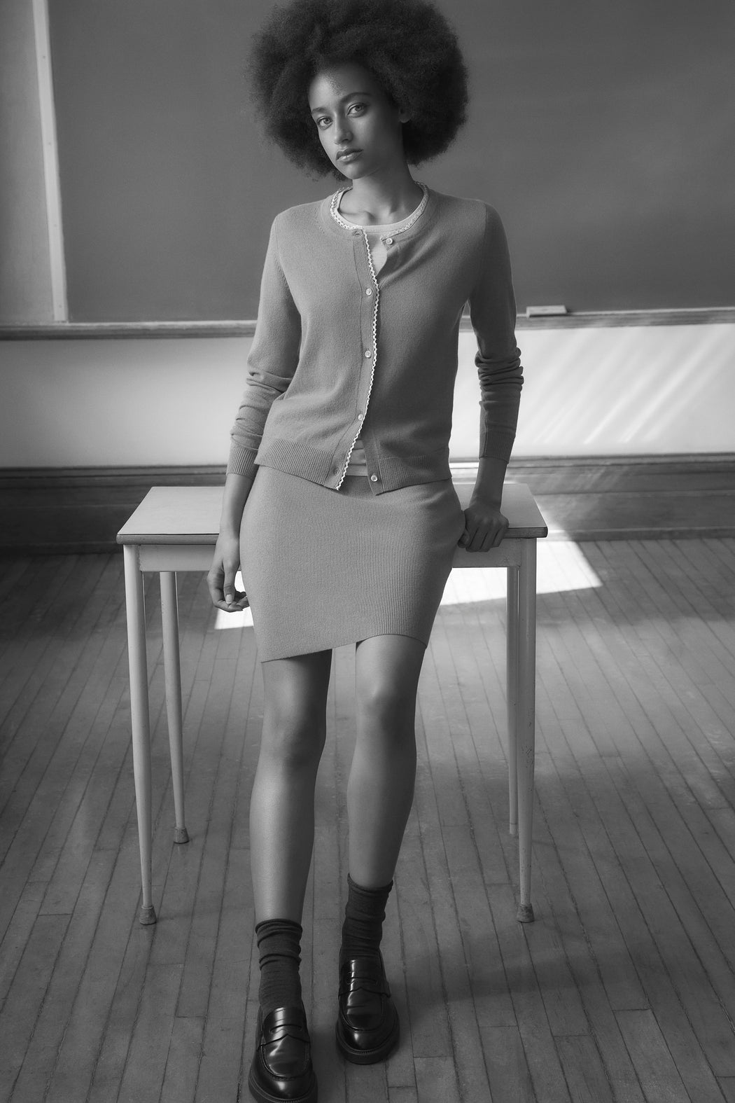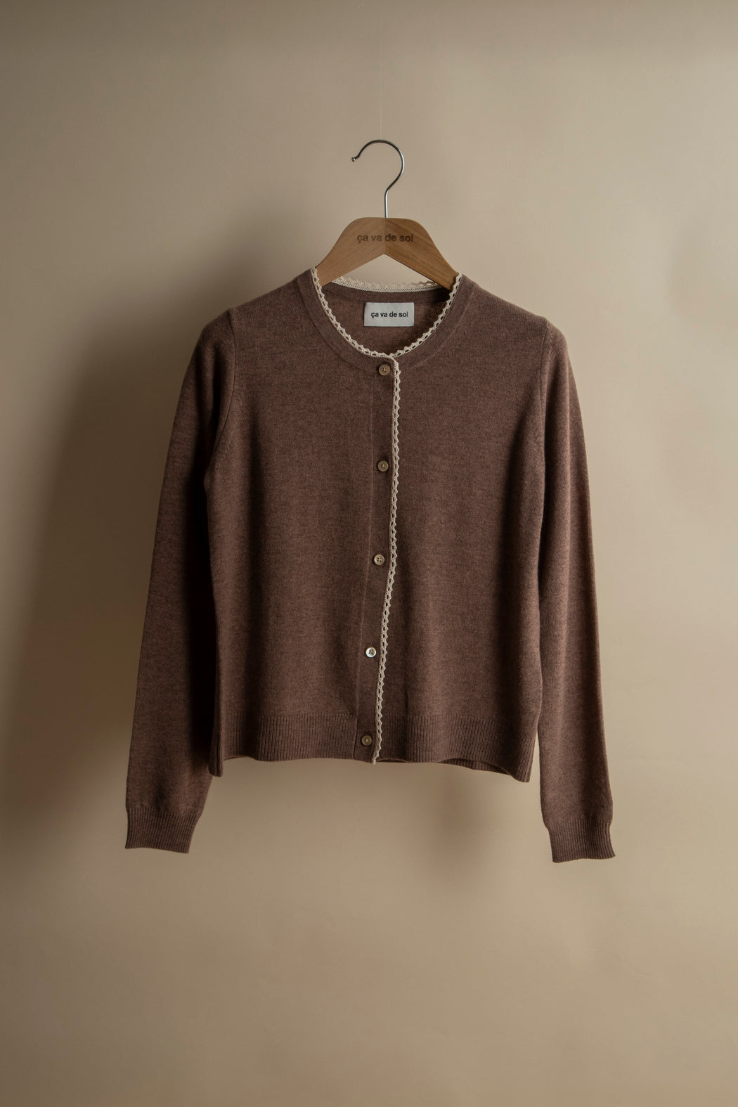 Femininity and sensuality best define this style. The "handmade" crochet lace is a detail here that brings a touch of nostalgia and a touch of craftsmanship: it is a pretty contrast that highlights the border at the neck and along the buttonholes. We love it with simple pants or a pencil skirt such as Hermione, for a twin-set in perfect harmony.