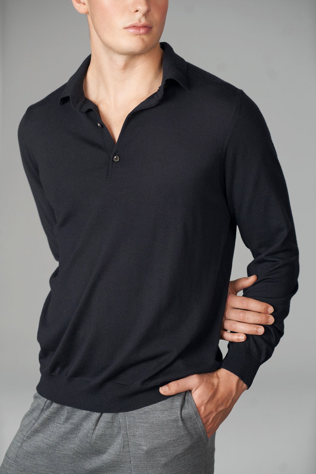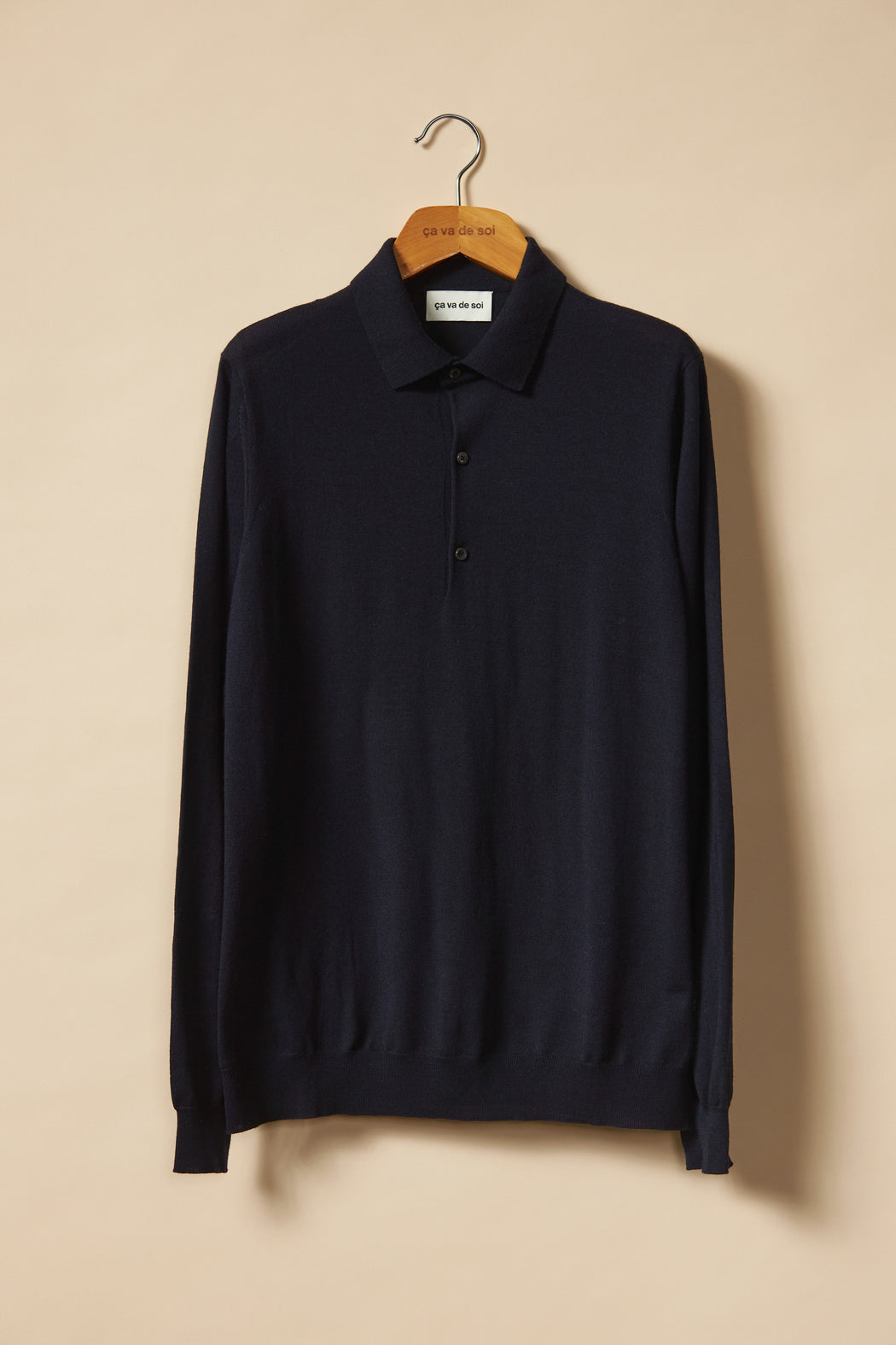 This iconic knitted polo is made of a fine Super 120 extra-long staples merino wool. Transitional and thermal, ça va de soi uses it for its softness, lightness and freshness. The pure and modern lines of this polo makes it simply perfect worn with pants or as a shirt under a blazer.