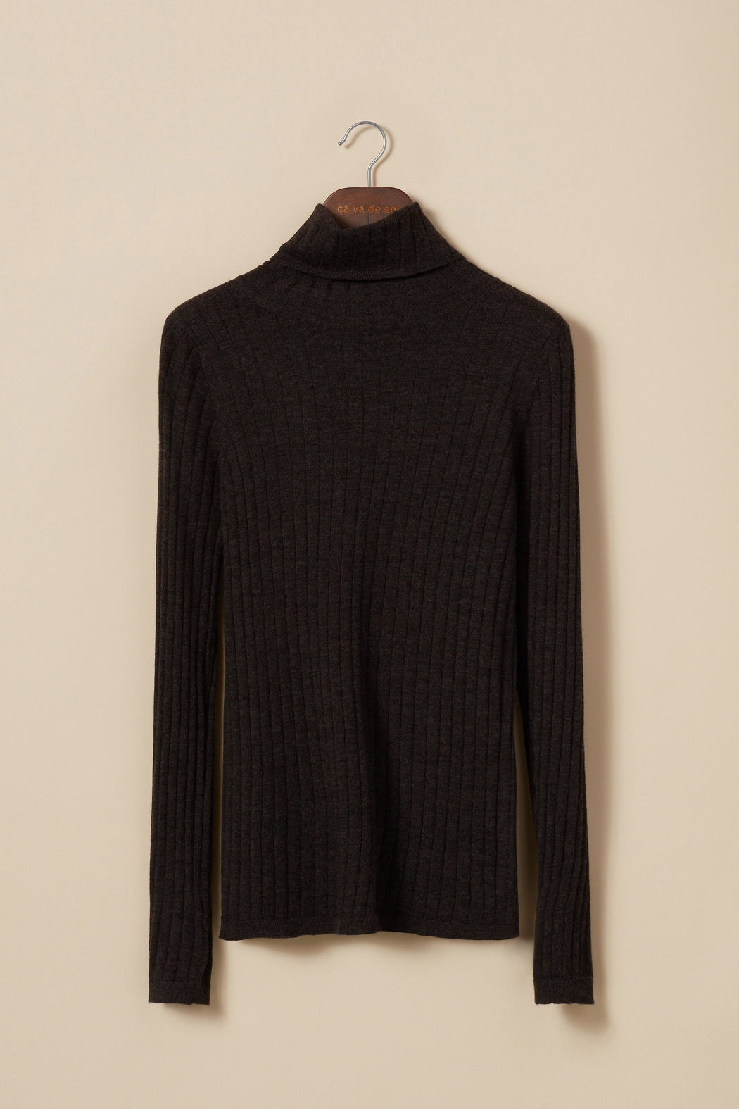 This beautiful filiform knit is energized revival of an authentic 1960s classic. Made from extra-fine merino wool, a material highly controlled by the Maison, this fine-ribbed and particularly lightweight turtleneck pairs beautifully with our Marlene pants. Its versatility opens up a horizon of possible combinations and looks. This long sweater comes in the most beautiful black we have ever created and also comes in three colours: brown (Castor), anthracite (Otter) and a warm oat (Lynx). Comprised of a vast spectrum of subtle nuances, these heathered shades are rich and sophisticated.