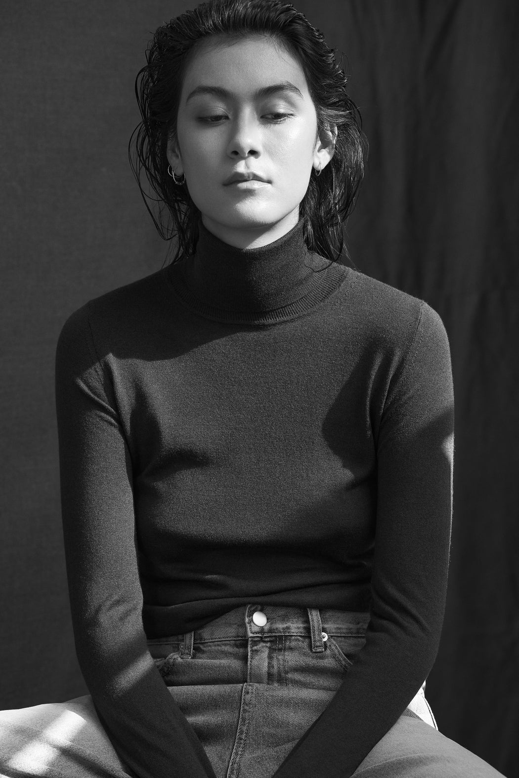 The perfect turtleneck you can't live without. Its beauty lies in its simplicity and looks flattering on everybody paired with your favorite pants, skirt... or perfect under a jacket thanks to its thinness. The assemblage of these three exceptional fibres provides a thermal effect thanks to the role of each of them, creating a balance between the retention and the procurement of heat. Silk playing the role of connector and gatherer equivalent to copper in electricity.