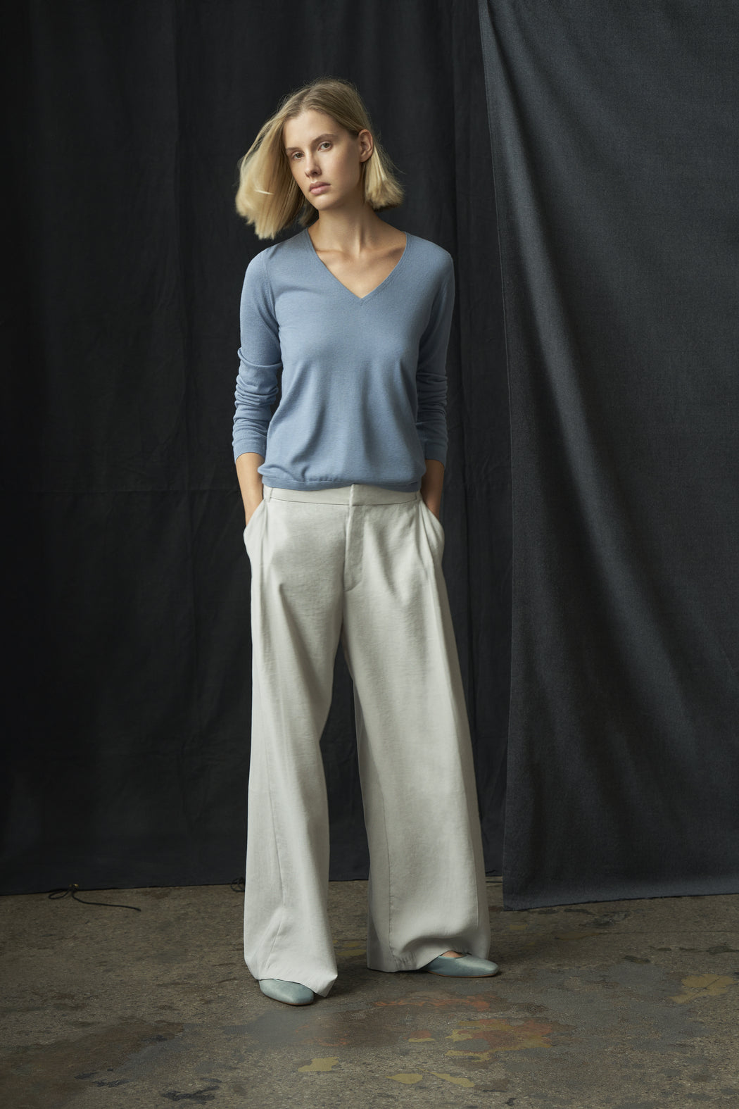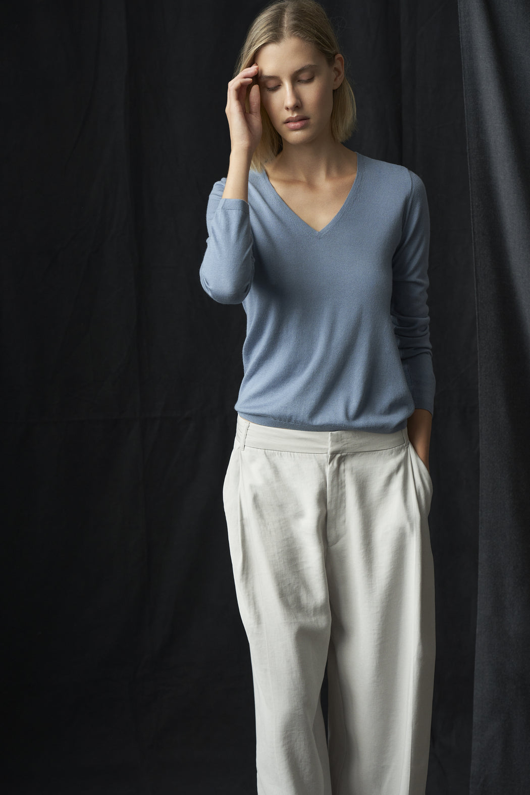 Both elegant and casual, this must-have sweater with detailed finishes and extreme softness will be your everyday ally. Add a necklace or pair it with the HISAKO scarf in the same material to accessorize it. The assemblage of these three exceptional fibres provides a thermal effect thanks to the role of each of them, creating a balance between the retention and the procurement of heat. Silk playing the role of connector and gatherer equivalent to copper in electricity.