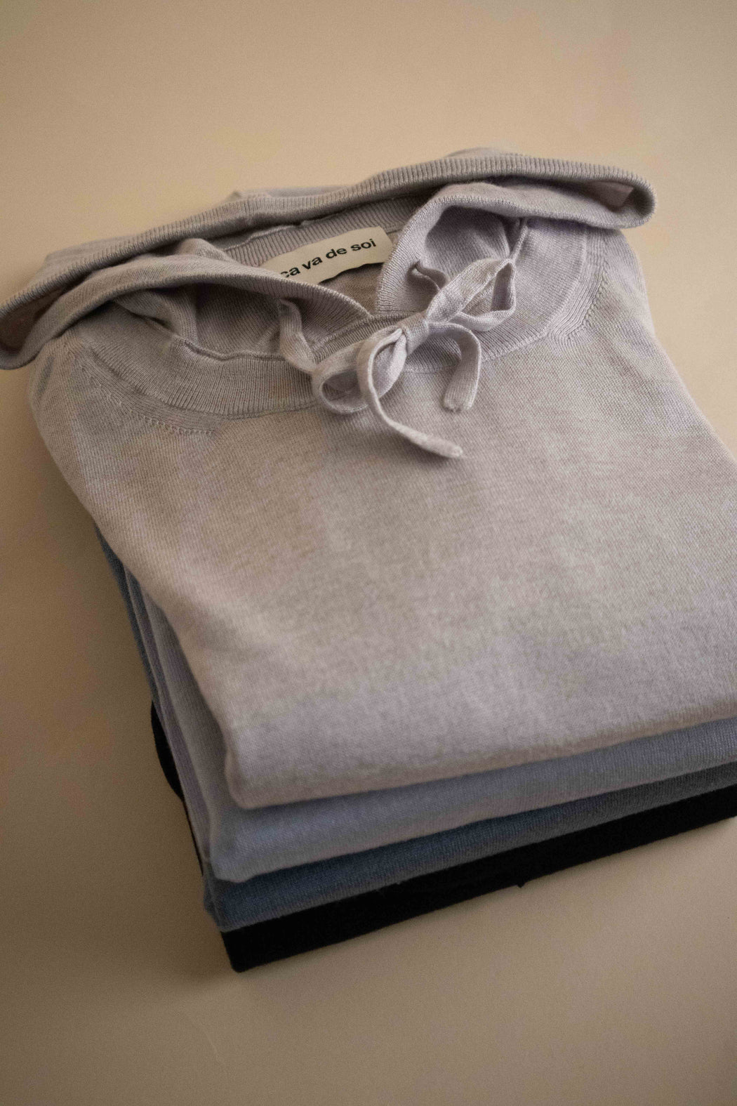 The chicest hoodie you will find in town! A revisited touch to this sportswear item by making it shorter and thinner, the ultimate casual-chic sweater! Wear with leggings for a relaxed look or dress it up with pants and tucked under a jacket. The assemblage of these three exceptional fibres provides a thermal effect thanks to the role of each of them, creating a balance between the retention and the procurement of heat. Silk playing the role of connector and gatherer equivalent to copper in electricity.
