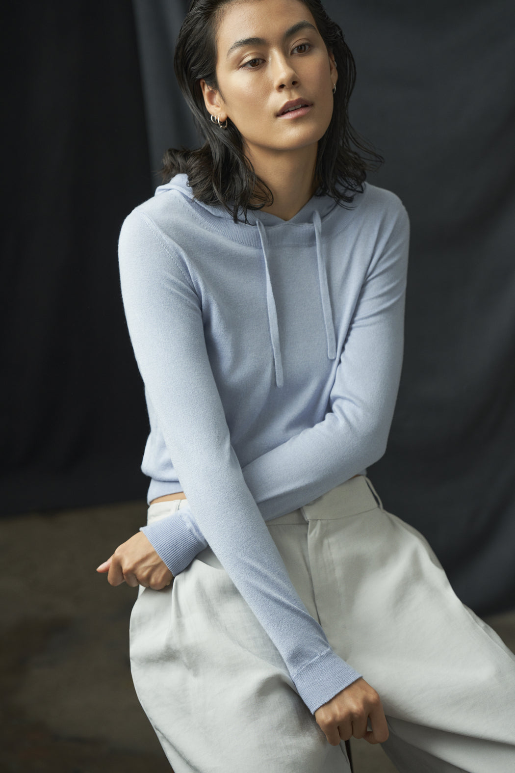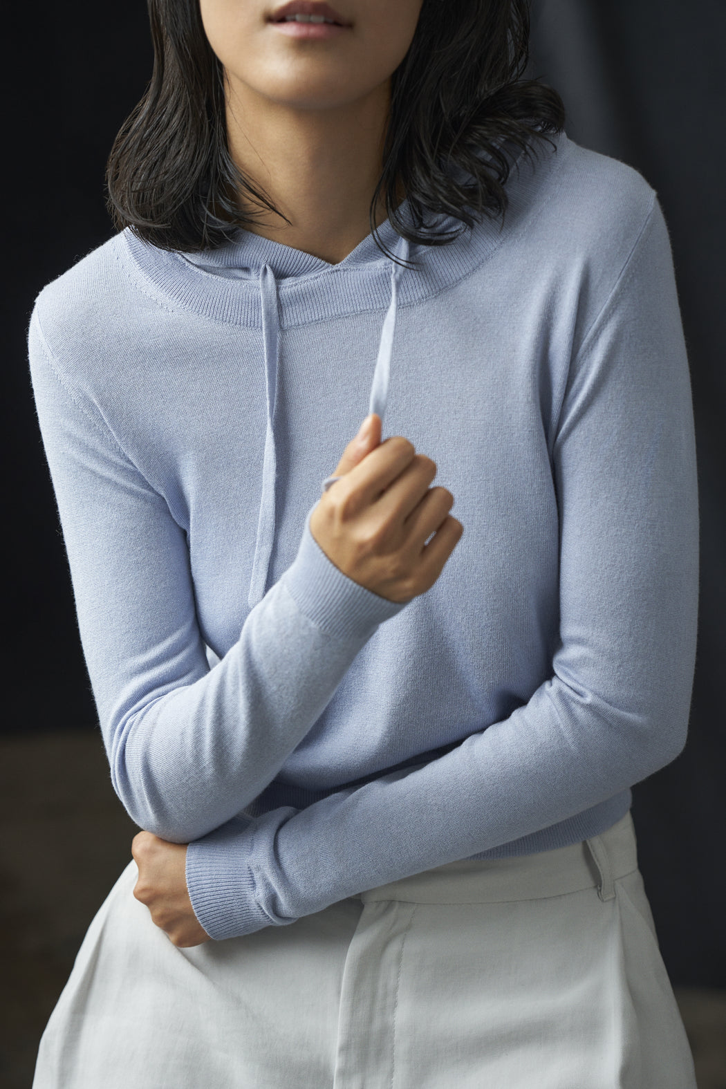 The chicest hoodie you will find in town! A revisited touch to this sportswear item by making it shorter and thinner, the ultimate casual-chic sweater! Wear with leggings for a relaxed look or dress it up with pants and tucked under a jacket. The assemblage of these three exceptional fibres provides a thermal effect thanks to the role of each of them, creating a balance between the retention and the procurement of heat. Silk playing the role of connector and gatherer equivalent to copper in electricity.