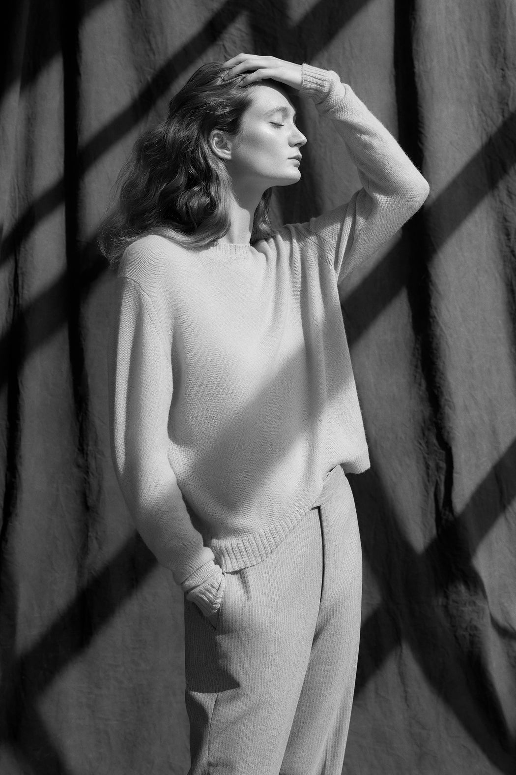 Light as air, warm as a gentle embrace — its 7-gauge knit offers a perfect balance of softness and warmth, like slipping into a quiet cloud on a winter’s day. With its relaxed silhouette, classic crew neckline, and elegance, this sweater will age with grace, a timeless companion through seasons to come.