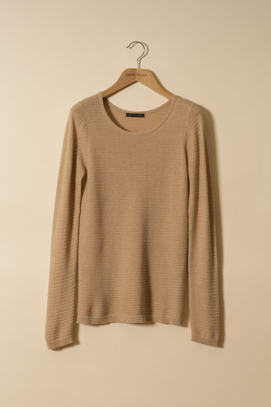 This sweater is made of Egyptian cotton COM4-ZERO™, the fruit of 50 years of research. This Italian thread combines the age-old beauty of Egyptian cottons with a cutting-edge spinning technique that almost entirely eliminates fuzziness, which traditionally causes pilling over time. The thread is twisted as little as possible to maintain the fibre’s natural elasticity, giving more movement to clothing made from it. The smoother finish also makes it better resist the passage of time. And the increased stability preserves colours indefinitely.