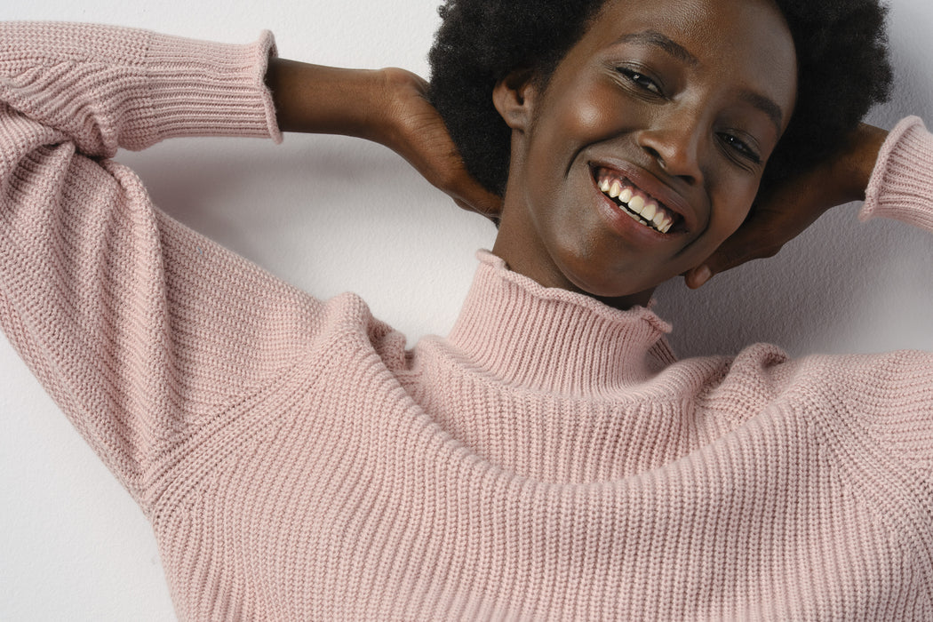 This fancy jumper with a funnel neck and English rib knit is inspired by the fishermen sweaters of the English seas. It stands out for the refined finish of the rolled collar, cuffs and opening. Cozy yet artsy, even a little punk twist depending on your mood...