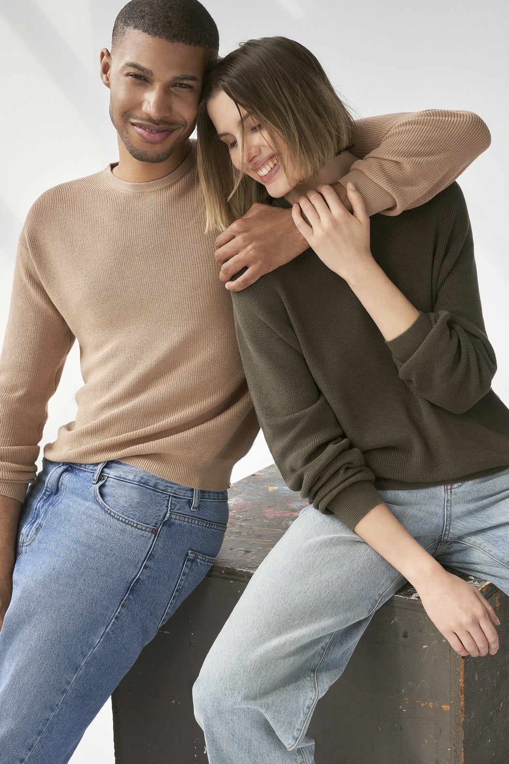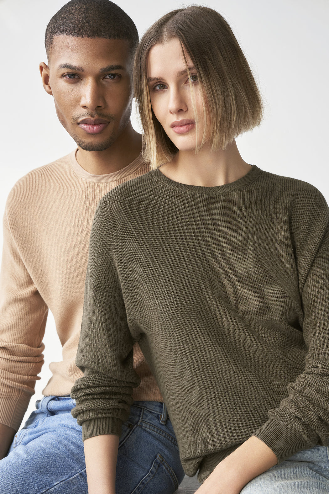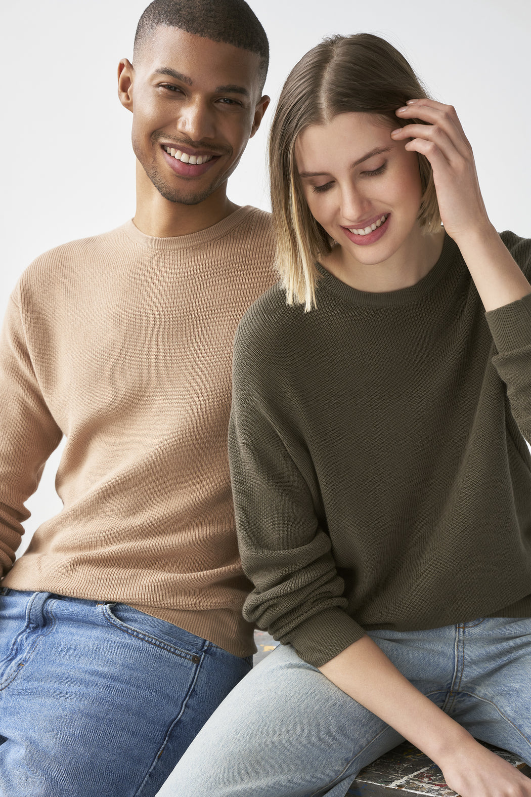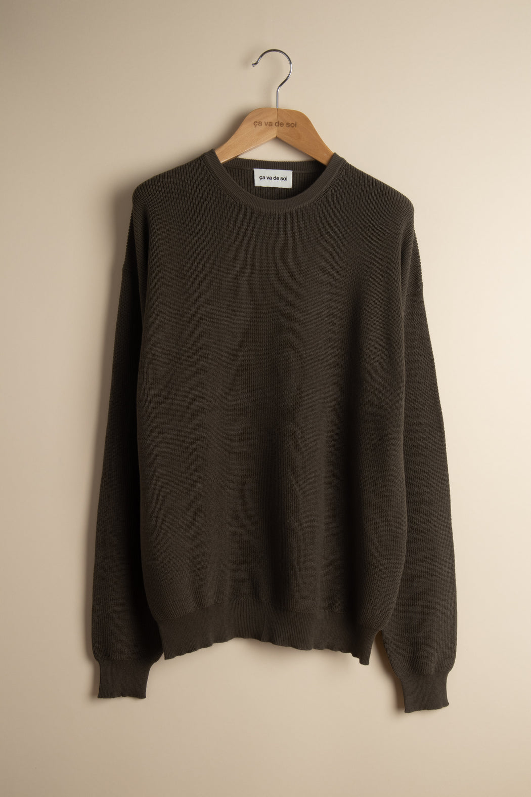 Inspired by the 80s, this loose fit ribbed crew neck jumper combines comfort and style,