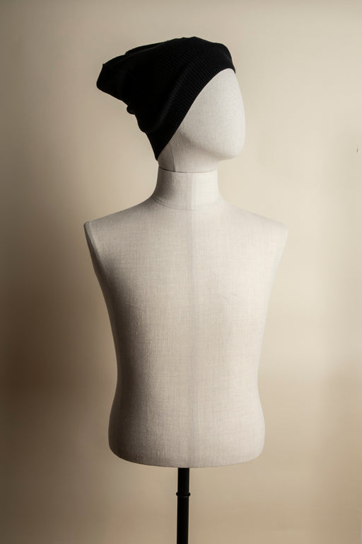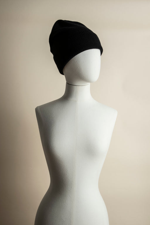 As you know, the simpler something is, the more complicated it is. To create the best effect, the proportions of the famous tuque, a very simple cap, must be perfected to the closest millimetre. Not too wide, not too long, but just long enough to be rolled, creating the perfect cuff. Its ability to expand must especially be flawlessly calibrated in a material that fits, while hugging the forehead. And a skin-tone flattering shade is a must. At ça va de soi, we venture to say that we got this one down to a T.