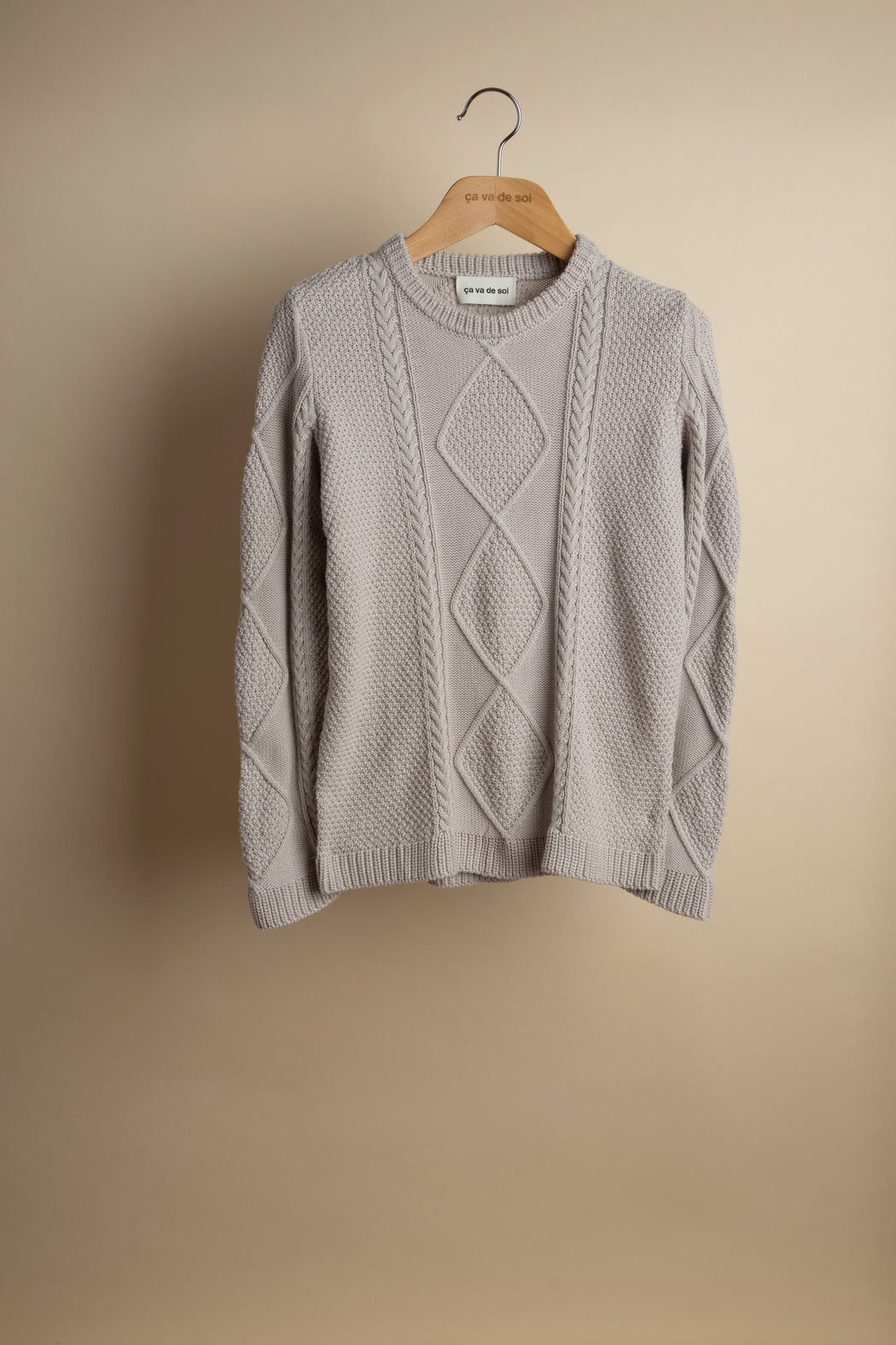 Willia, the Aran sweater has been in our imaginary for decades. We revisit from time to time. Each stitch has its own meaning, a historical legacy from the life of the seafaring communities. For example, each braid (the Cable Stitch) represents the ropes of the fisherman and symbolizes the wish for a fruitful day at sea.