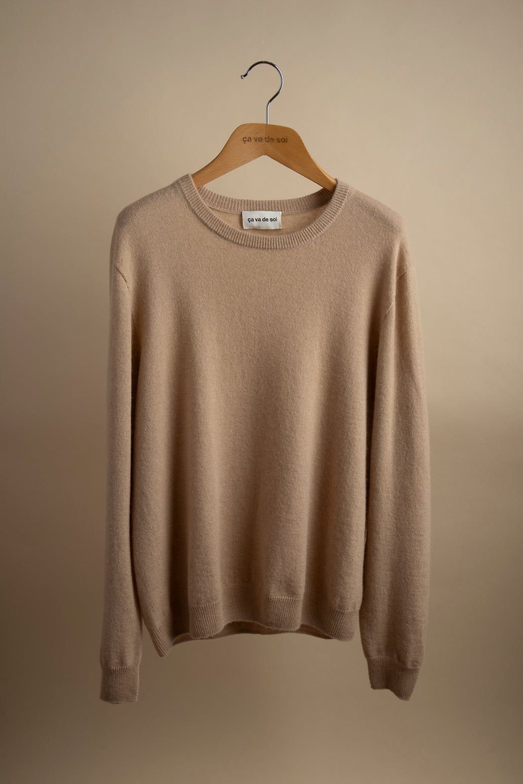 Fibre rare et précieuse, la laine de bébé chameau (15.5 microns) provient de la toute première mue du jeune animal. Elle offre une douceur sèche et légère, avec une chaleur subtile et enveloppante. Sa teinte naturelle du brun doré au beige clair évoque les dunes du désert. À la fois raffinée et authentique, elle incarne l’élégance sobre d’une matière née pour traverser les extrêmes.