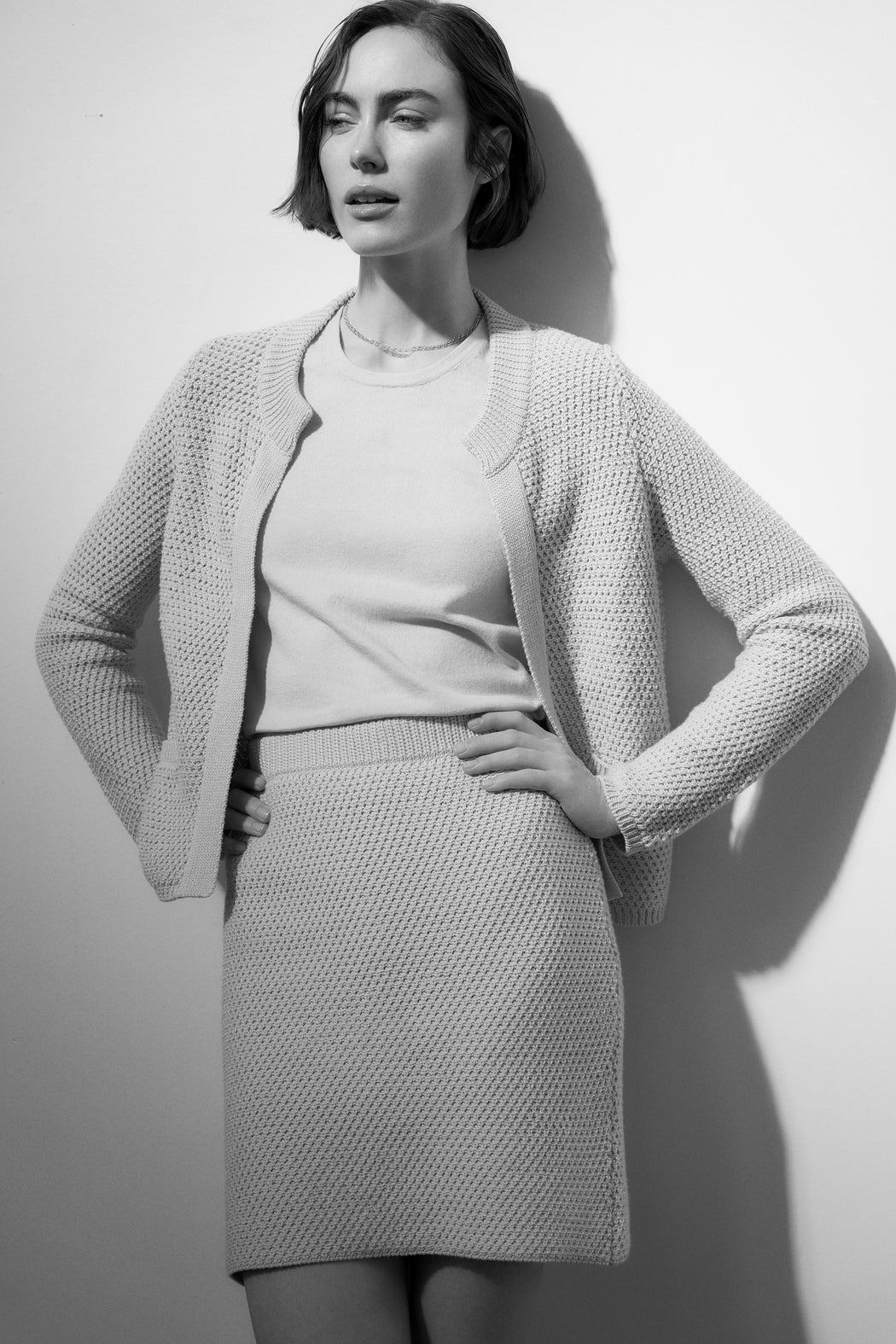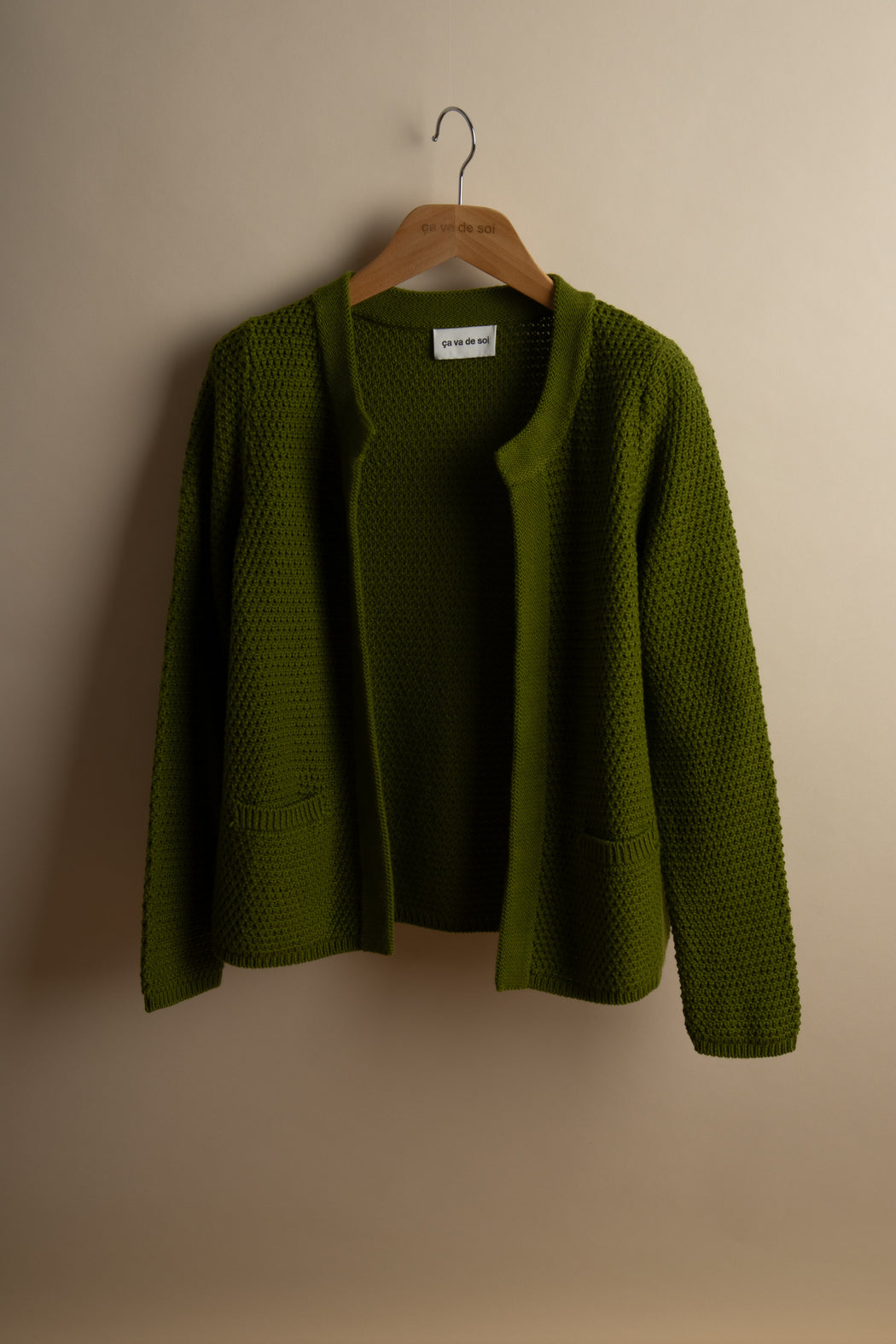 Une pièce très spéciale dans cette collection, autant par son tricotage en nid d'abeille, que pour sa coupe, qui n'est pas sans rappeler les tailleurs des grandes maisons de couture. Une coupe simple, redoutablement efficace pour vous donner de l'allure. Des petites poches sur le devant ainsi que les finitions des bords en tubulaire inversé, complètent le style intemporel de ce cardigan. Idéalement porté en mode tailleur avec sa jupe CLICHY assortie, pour une occasion ou une sortie le soir, ou avec un jeans brut et des ballerines pour un look contemporain revisité.